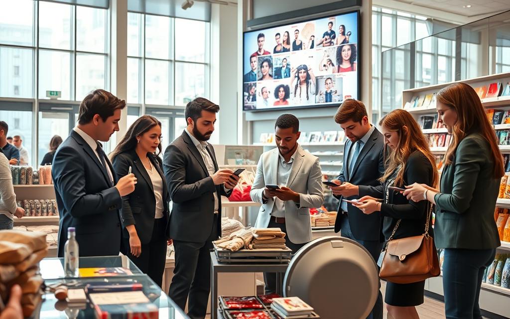 As redes sociais são muito fortes em moldar o que compramos. Elas mostram o que está em moda e criam novas coisas que queremos.